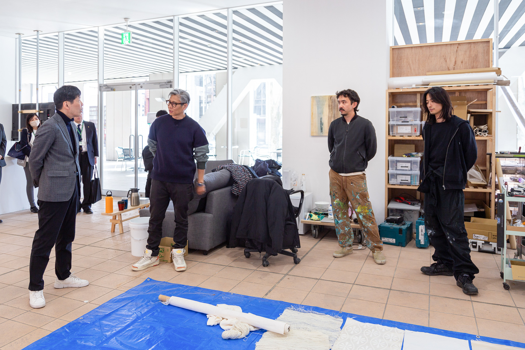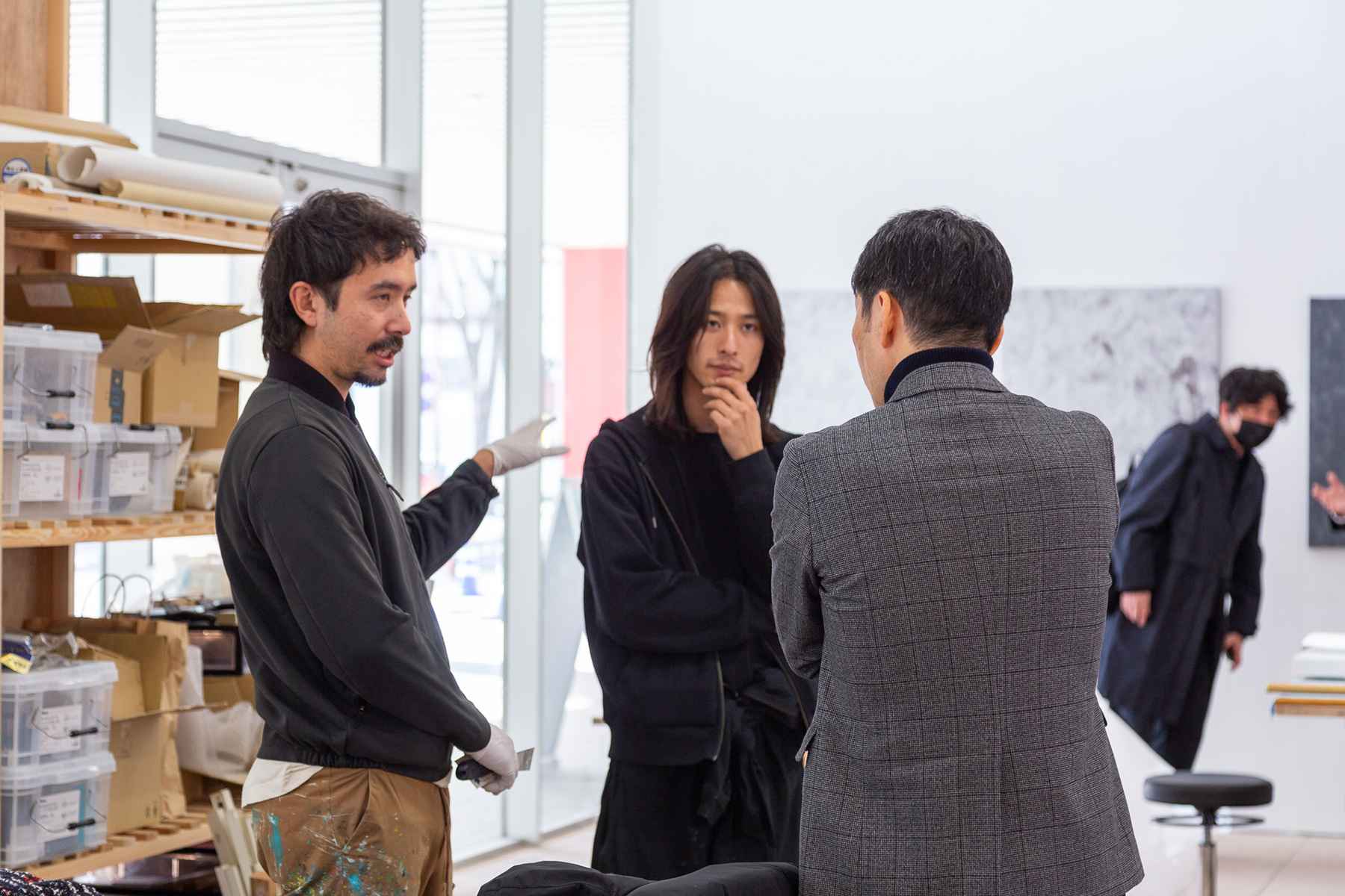 この度、群馬パーセントフォーアート推進事業と連携した「ソノ アイダ#前橋 ARTIST STUDIO 01」では、2025年2月から1ヶ月半のスタジオ制作期間を経て、相澤安嗣志、岩村寛人の成果展を開催します。相澤安嗣志による、群馬県でのリサーチを生かした日本画を再解釈した新作シリーズ、岩村寛人による建築を出発点とする、左官・積層・剥ぎとり、オリジナルの道具を開発しながら制作した新作などがご覧いただけます。3/21金18時よりオープニングレセプションも行います、この機会に是非ご高覧頂ければと思います。